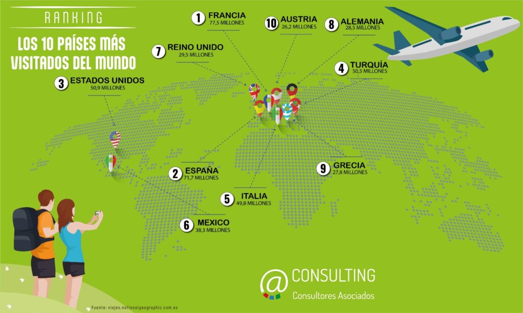 Por Jorge Posdeley, en este articulo destacamos el ranking de los 15 países del mundo más visitados en el 2023,